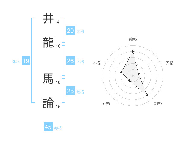 井龍 馬論さんの外格は19画の1点!