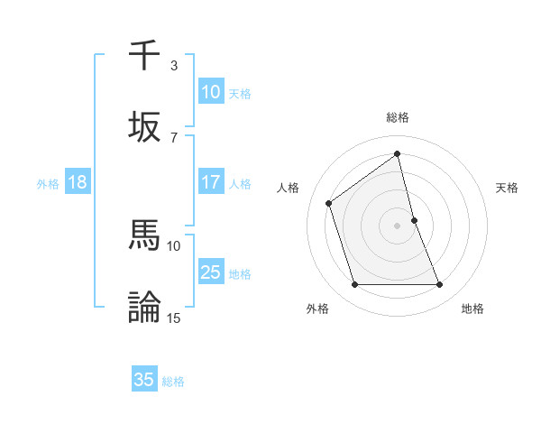 千坂 馬論さんを姓名の画数から五運を鑑定