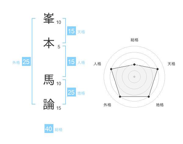 峯本 馬論さんを姓名の画数から五運を鑑定