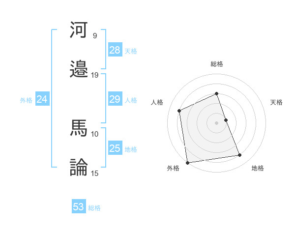 河邉 馬論さんを姓名の画数から五運を鑑定