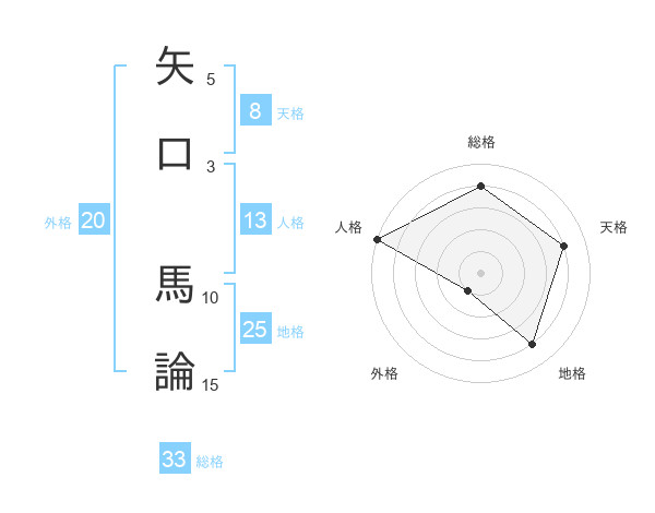 矢口 馬論さんを姓名の画数から五運を鑑定