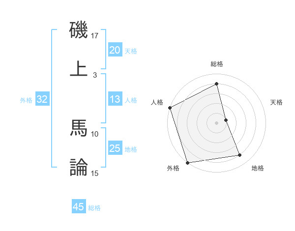 磯上 馬論さんの総格は45画の4点!