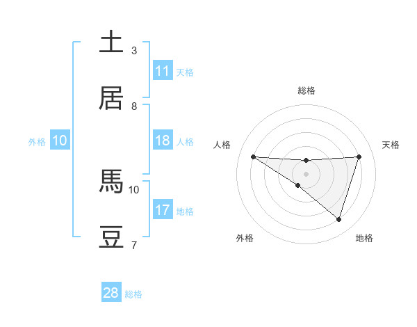 土居 馬豆さんの天格は11画の4点!