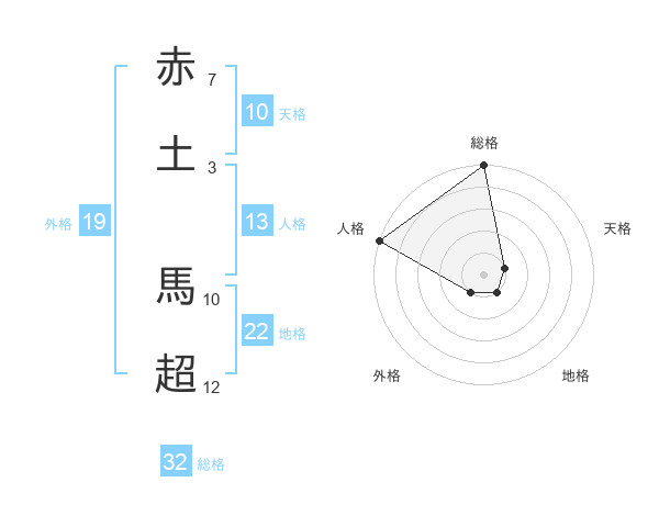 赤土 馬超さんの地格は22画の1点!