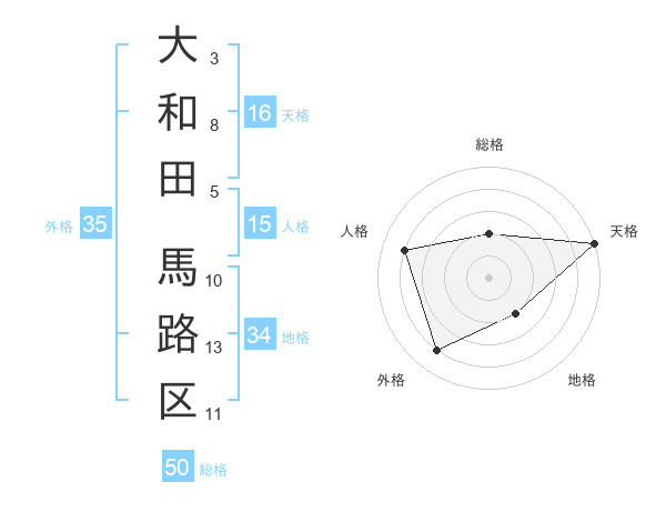 大和田 馬路区さんを姓名の画数から五運を鑑定