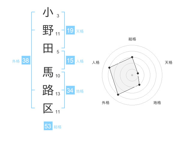 小野田 馬路区さんを姓名の画数から五運を鑑定