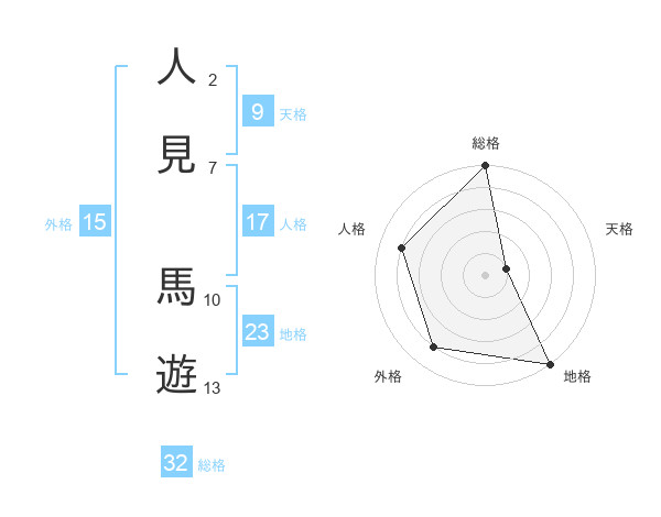 人見 馬遊さんの総格は32画の5点!