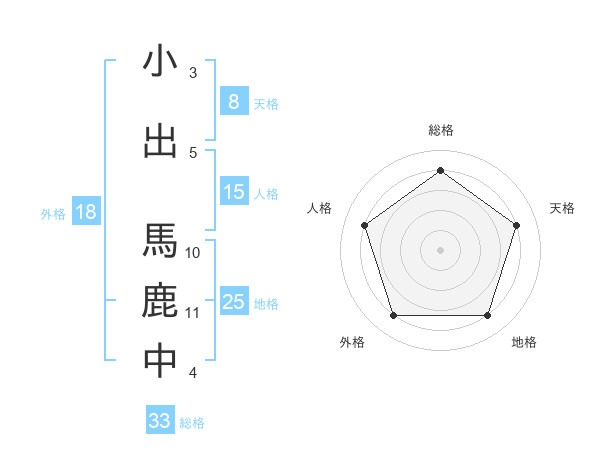 小出 馬鹿中さんを姓名の画数から五運を鑑定