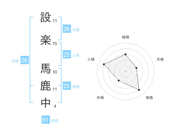 設楽 馬鹿中さんを姓名の画数から五運を鑑定