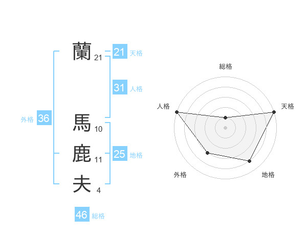 蘭 馬鹿夫さんを姓名の画数から五運を鑑定