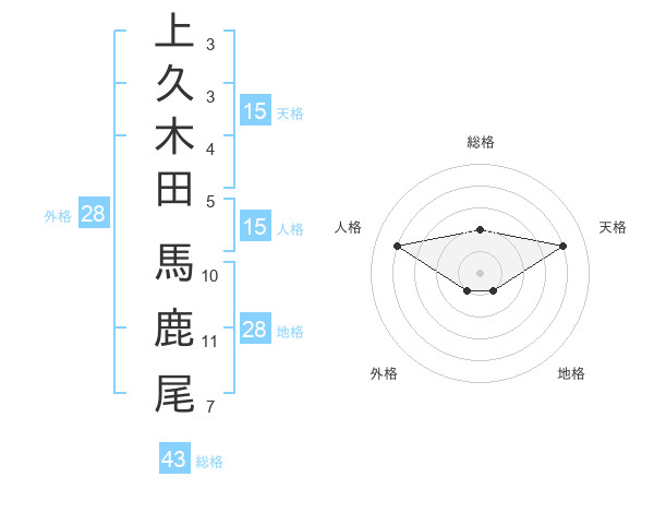 上久木田 馬鹿尾さんの総格は43画の2点!