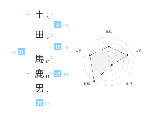 土田 馬鹿男さんを姓名の画数から五運を鑑定