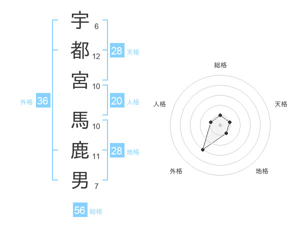 宇都宮 馬鹿男さんの総格は56画の1点!