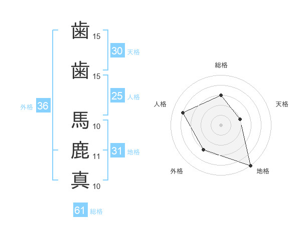 歯歯 馬鹿真さんの名前の鑑定結果は!