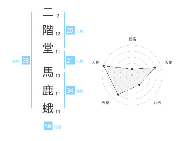 二階堂 馬鹿蛾さんの天格は25画の4点!