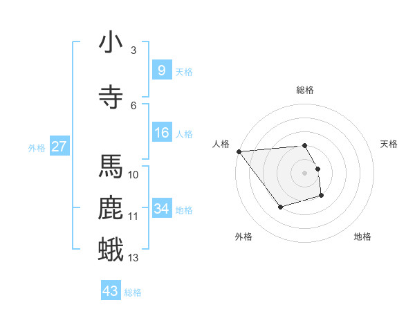 小寺 馬鹿蛾さんの外格は27画の3点!