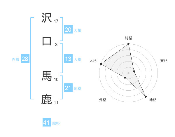 沢口 馬鹿さんを姓名の画数から五運を鑑定