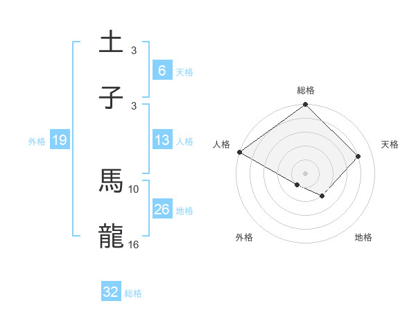 土子 馬龍さんの総格は32画の5点!