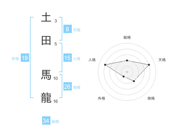 土田 馬龍さんを姓名の画数から五運を鑑定