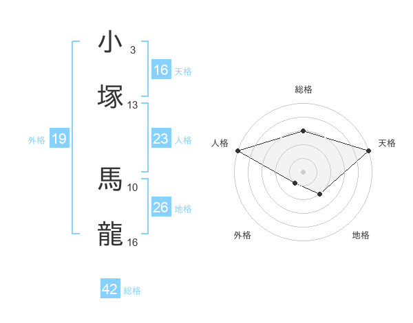 小塚 馬龍さんを姓名の画数から五運を鑑定