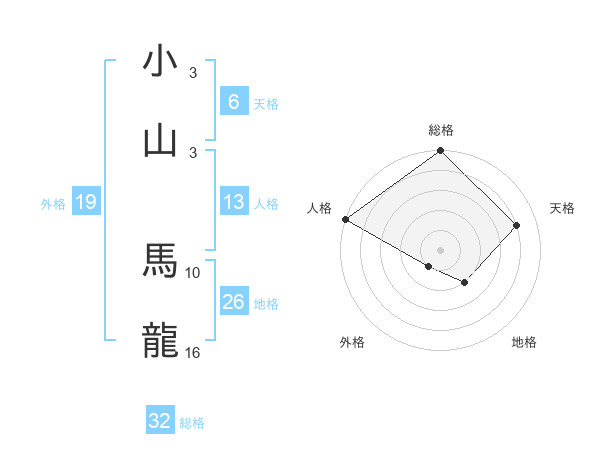 小山 馬龍さんの総格は32画の5点!