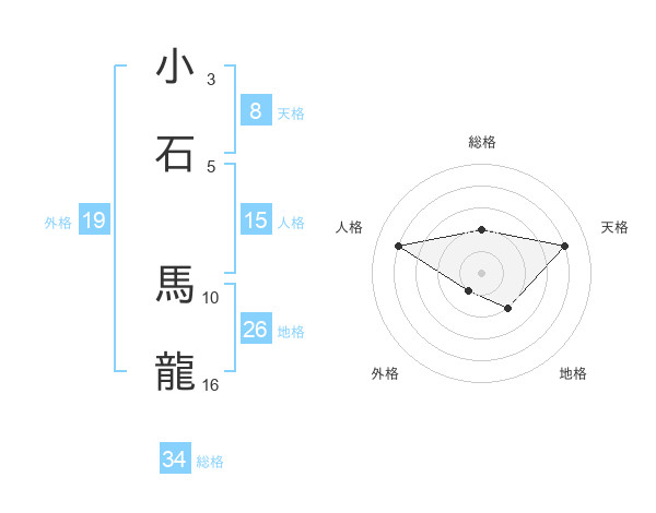 小石 馬龍さんを姓名の画数から五運を鑑定