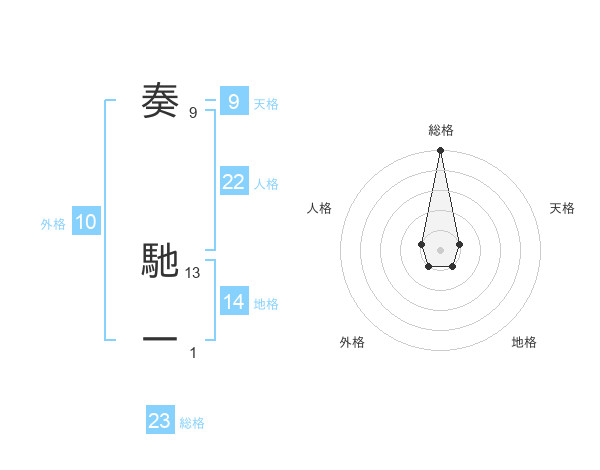 奏 馳一さんの総格は23画の5点!