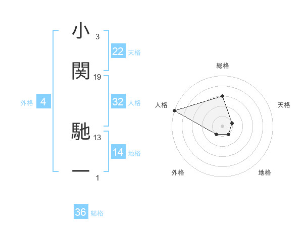 小関 馳一さんの総格は36画の3点!