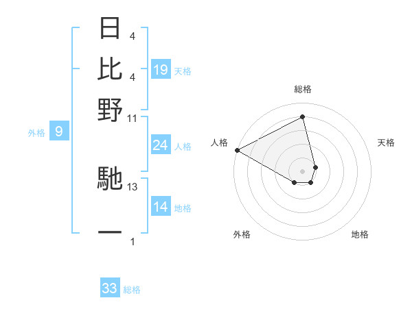 日比野 馳一さんを姓名の画数から五運を鑑定