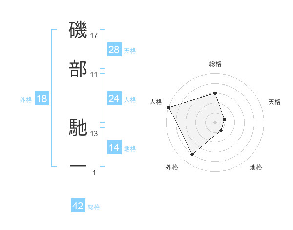 磯部 馳一さんを姓名の画数から五運を鑑定