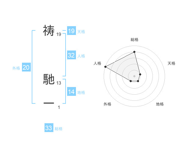 祷 馳一さんの天格は19画の1点!