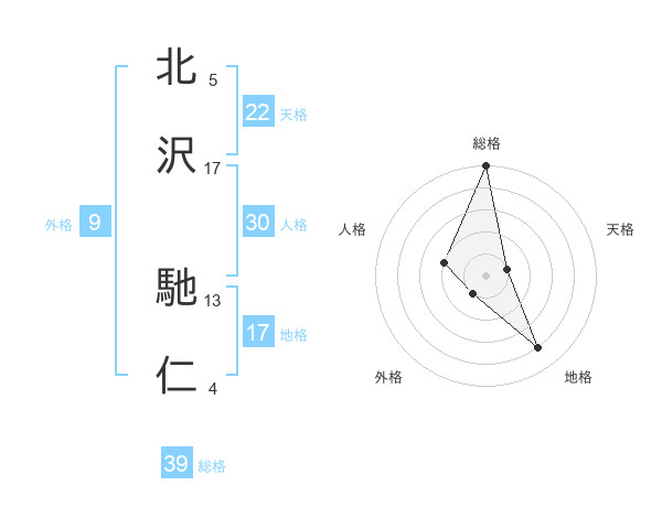北沢 馳仁さんを姓名の画数から五運を鑑定