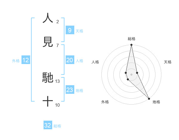 人見 馳十さんの総格は32画の5点!