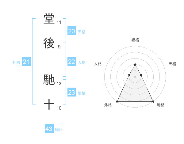 堂後 馳十さんを姓名の画数から五運を鑑定