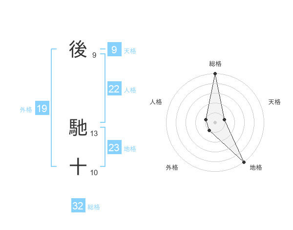 後 馳十さんの総格は32画の5点!