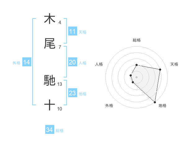木尾 馳十さんを姓名の画数から五運を鑑定