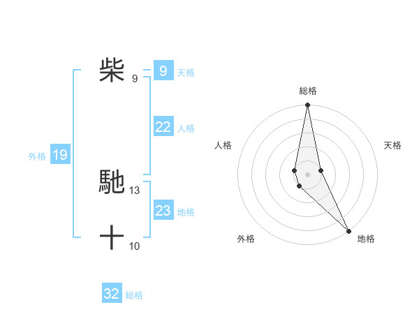 柴 馳十さんの総格は32画の5点!