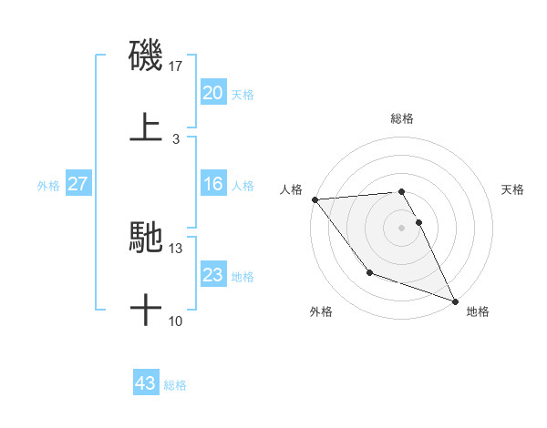 磯上 馳十さんを姓名の画数から五運を鑑定