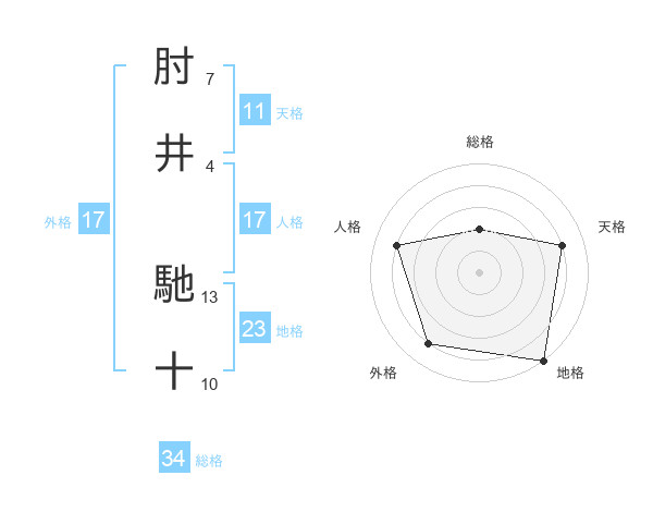 肘井 馳十さんの総格は34画の2点!