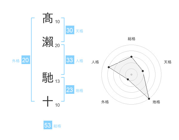 髙瀨 馳十さんを姓名の画数から五運を鑑定