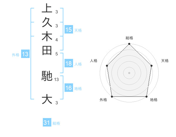 上久木田 馳大さんを姓名の画数から五運を鑑定