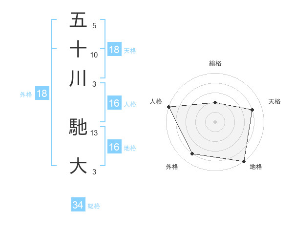 五十川 馳大さんを姓名の画数から五運を鑑定