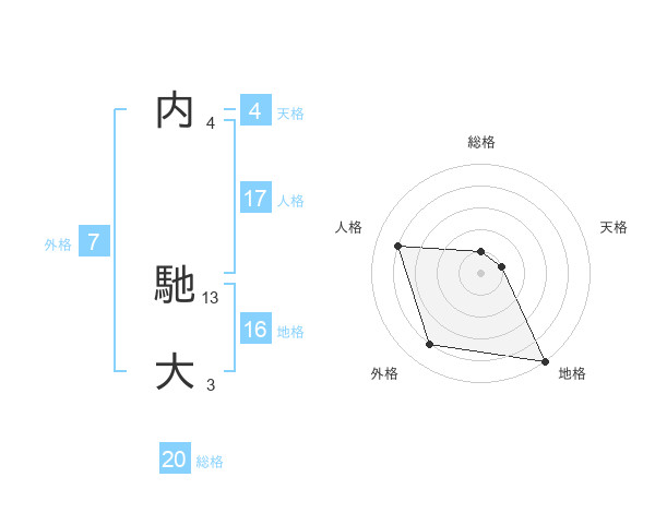 内 馳大さんの総格は20画の1点!