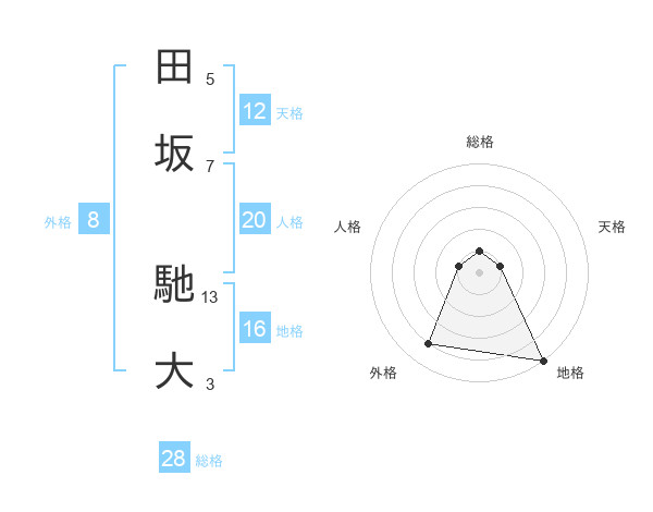 田坂 馳大さんの総格は28画の1点