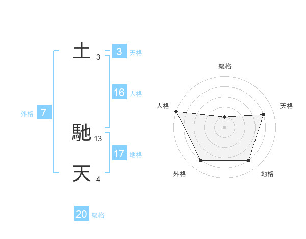 土 馳天さんの総格は20画の1点!