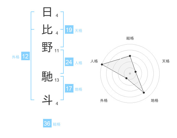 日比野 馳斗さんを姓名の画数から五運を鑑定