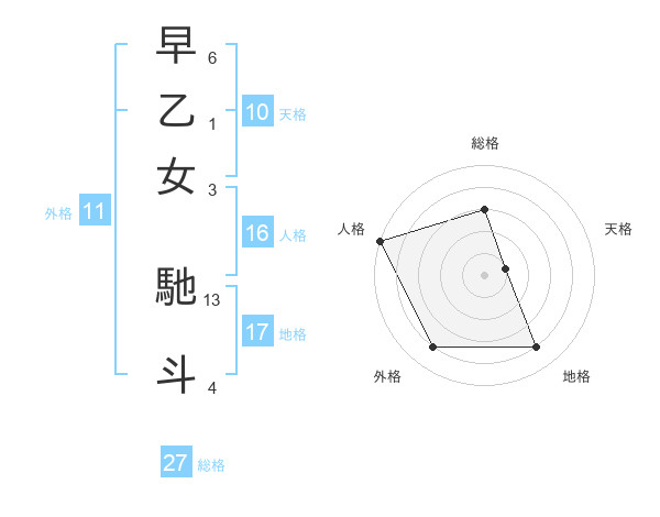 早乙女 馳斗さんを姓名の画数から五運を鑑定