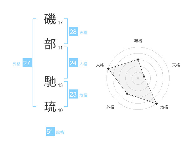磯部 馳琉さんを姓名の画数から五運を鑑定