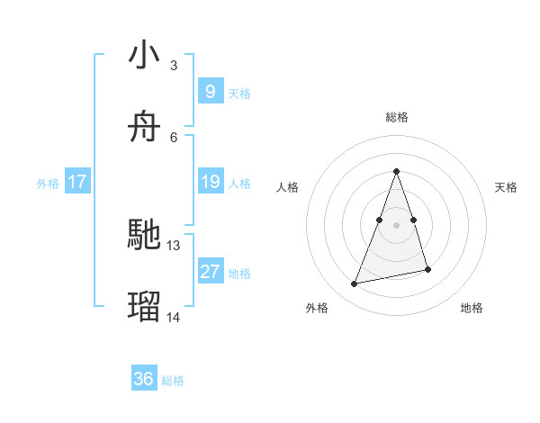 小舟 馳瑠さんを姓名の画数から五運を鑑定