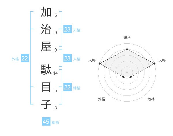 加治屋 駄目子さんを姓名の画数から五運を鑑定